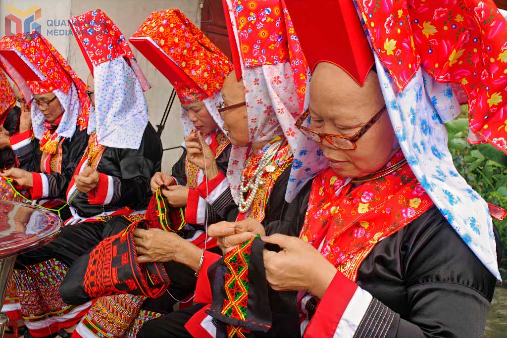 Người dân tộc thiểu số xã Đầm Hà thêu trang phục dân tộc.
