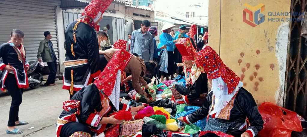 Bán trang phục truyền thống của đồng bào các dân tộc tại chợ Đồng Văn, xã Hoành Mô.