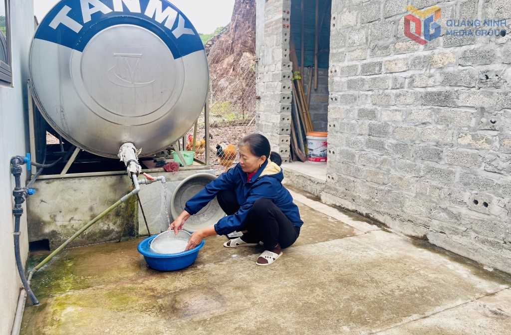 Người dân thôn Khe Lọng Ngoài (xã Ba Chẽ) vui mừng được sử dụng nguồn nước từ công trình nước sạch tập trung. Ảnh: Đinh Hằng.