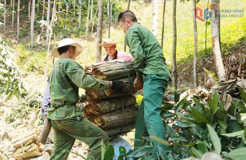 Người dân trên địa bàn xã Ba Chẽ thu hoạch quế.