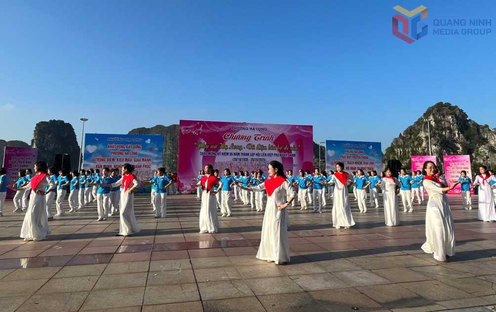 Phụ nữ phường Hạ Long tham gia nhảy dân vũ trong chương trình "Phụ nữ Hạ Long - Vũ điệu bên bờ di sản".