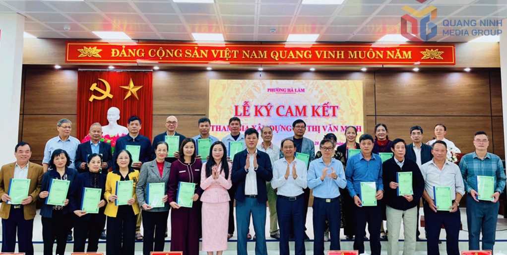 Đại diện 22 khu phố trên địa bàn phường Hà Lầm ký cam kết triển khai các công trình, phần việc theo tinh thần “Mỗi khu phố một công trình, một phần việc vì cộng đồng”.