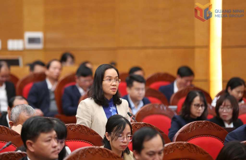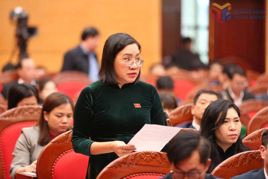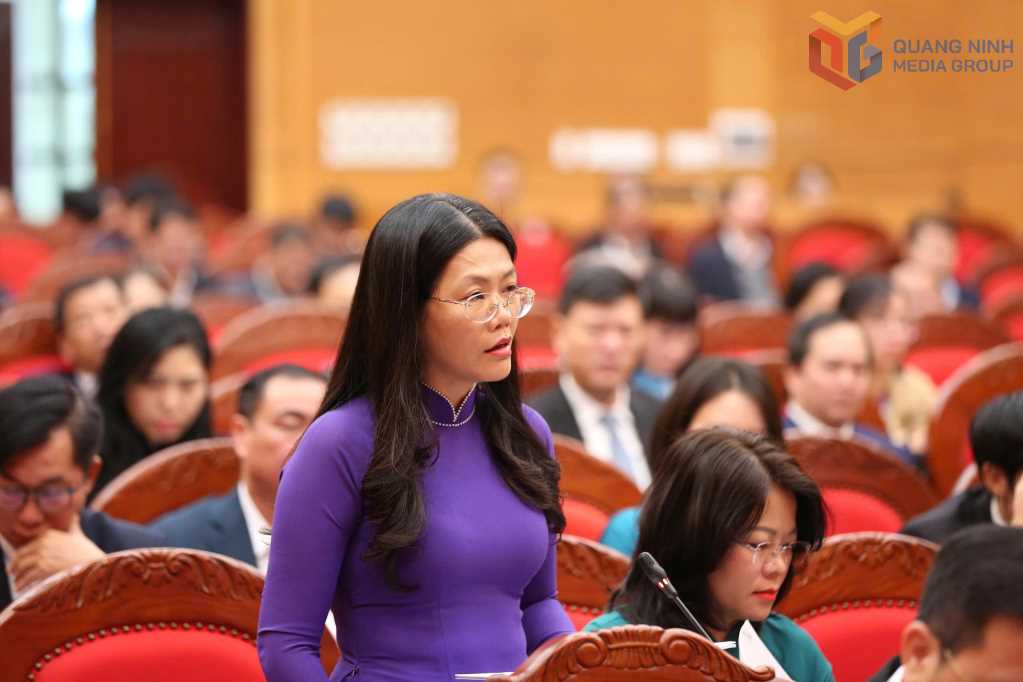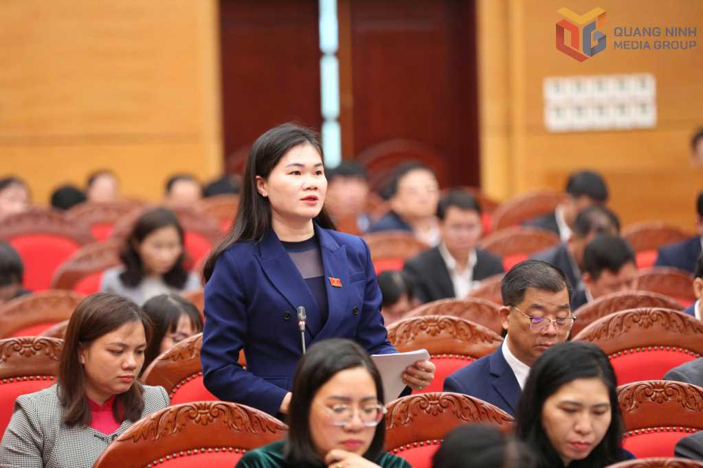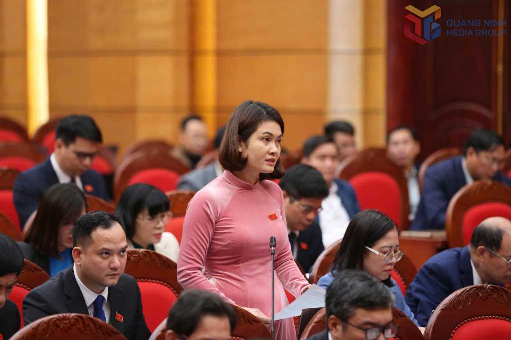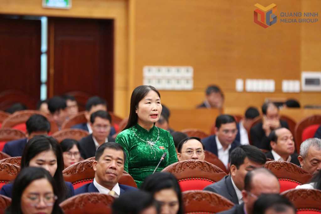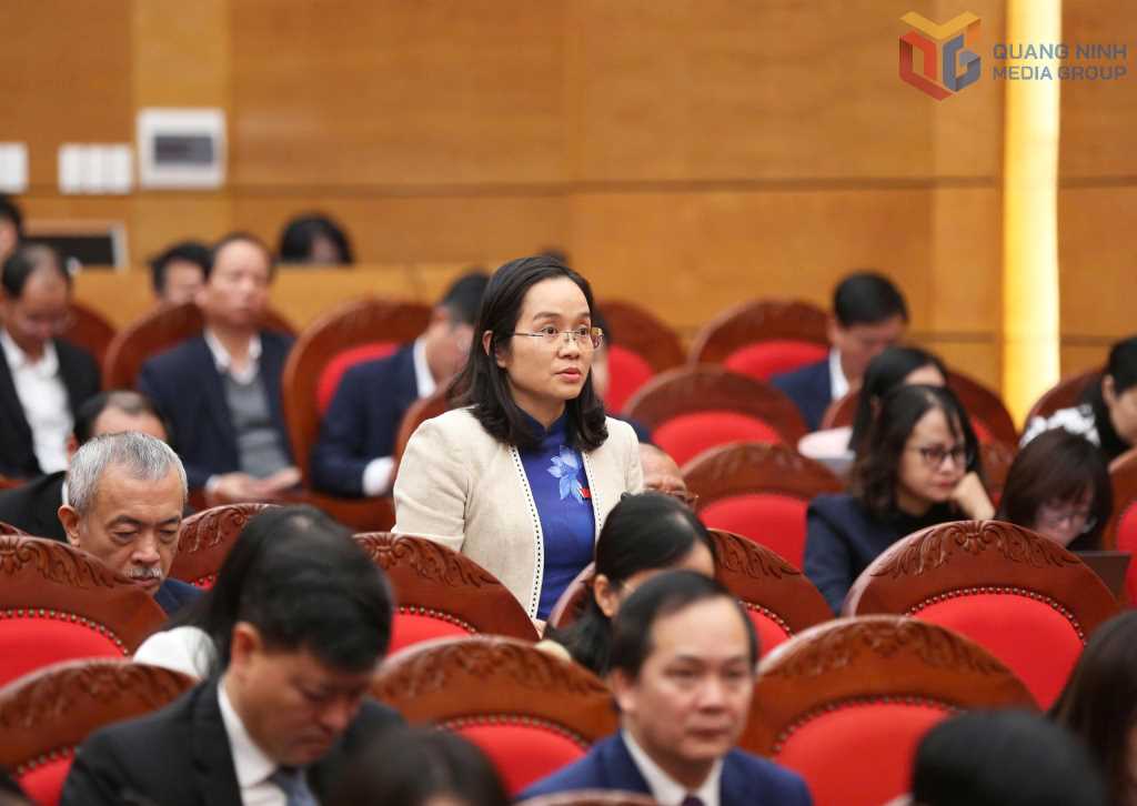 Đại biểu Bùi Quỳnh Nga, Phó Bí thư Thường trực Đảng ủy, Chủ tịch HĐND phường Quảng Yên, chất vấn tại kỳ họp.