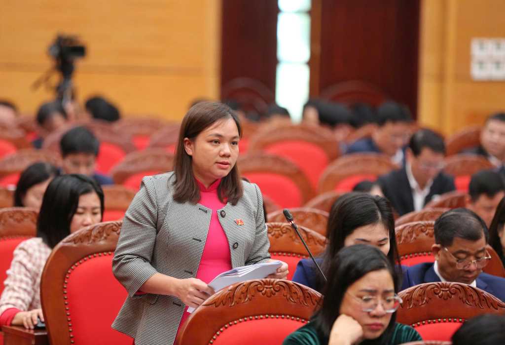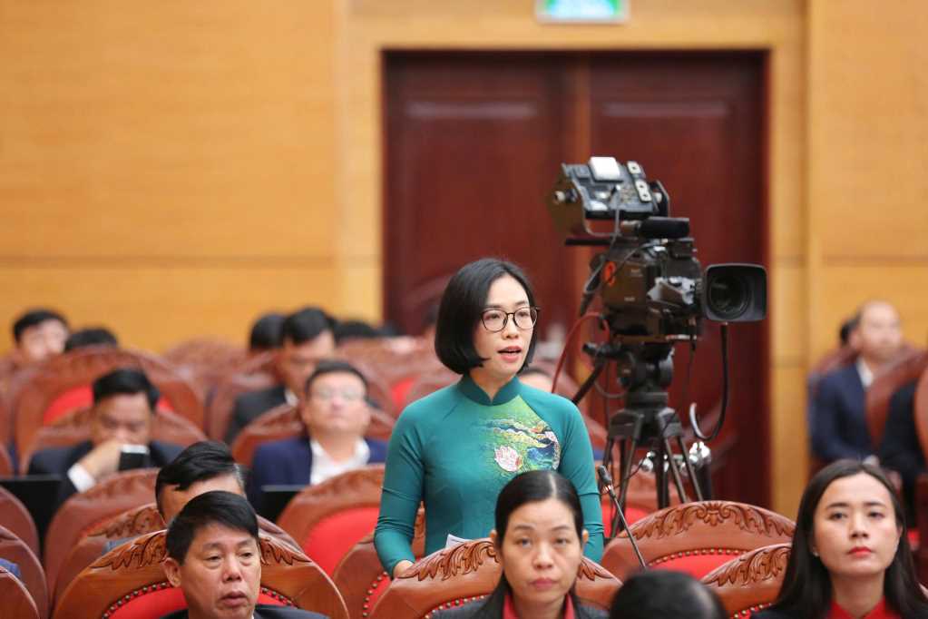 Đại biểu Nguyễn Thị Thúy Hằng, Phó Bí thư Thường trực Đảng ủy, Chủ tịch HĐND phường Cao Xanh, chất vấn tại kỳ họp.