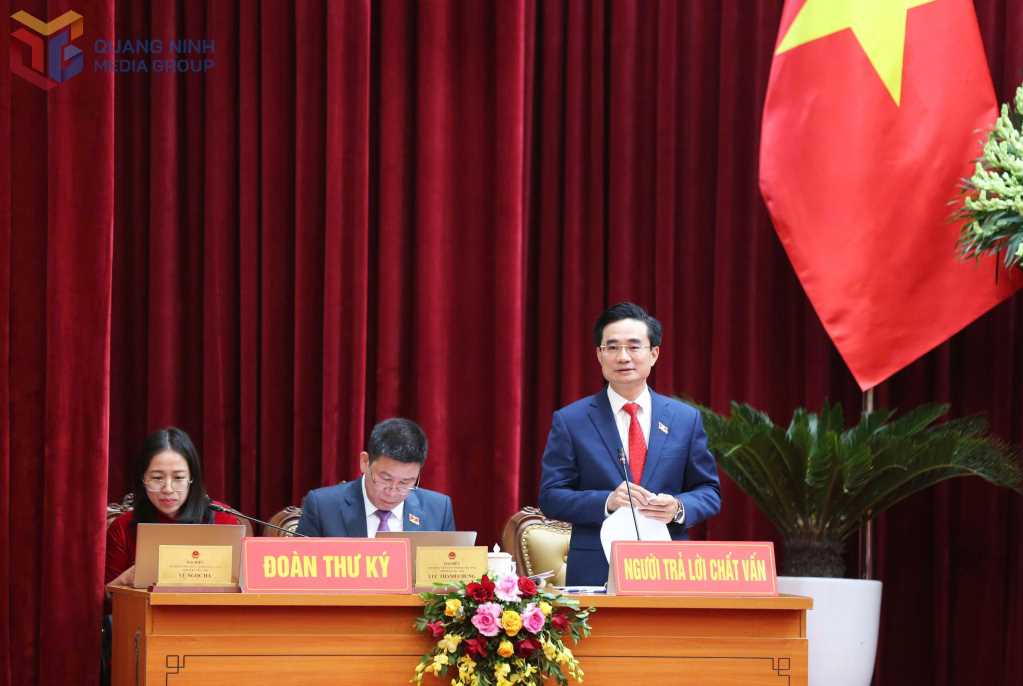 Trả lời đại biểu Nguyễn Anh Tuấn về nguyên nhân tình trạng ngập lụt đô thị, Giám đốc Sở Xây dựng Nguyễn Anh Tú phân tích nguyên nhân khách quan trước hết là do biến đổi khí hậu và nước biển dâng. Theo định hướng Quy hoạch tỉnh đã cập nhật kịch bản nước biển dâng ở Quảng Ninh theo Kịch bản biến đổi khí hậu năm 2020, đến năm 2030, mực nước biển dâng là 12 đến 13cm và đến năm 2050 là 22 đến 26cm. Tương ứng với cao độ san nền tối thiểu của các khu dân dụng là +3.5m và khu vực quan trọng + 4.5m (theo tính toán tại quy hoạch tỉnh với tần suất tương đương 100 năm xảy ra 01 lần). Đặc điểm điều kiện địa hình Quảng Ninh là đồi núi ven biển trải dài theo các tuyến giao thông, có độ dốc lớn và gần biển; hầu hết các đô thị hình thành, phát triển nằm ở khu vực ven biển, dưới chân đồi núi, các tuyến suối, kênh thoát nước tiếp nhận nước, bùn đất từ hoạt động khai thác khoáng sản, các khai trường khai thác than nên thường xuyên bị tác động, lấp đầy nếu không được thường xuyên nạo vét.