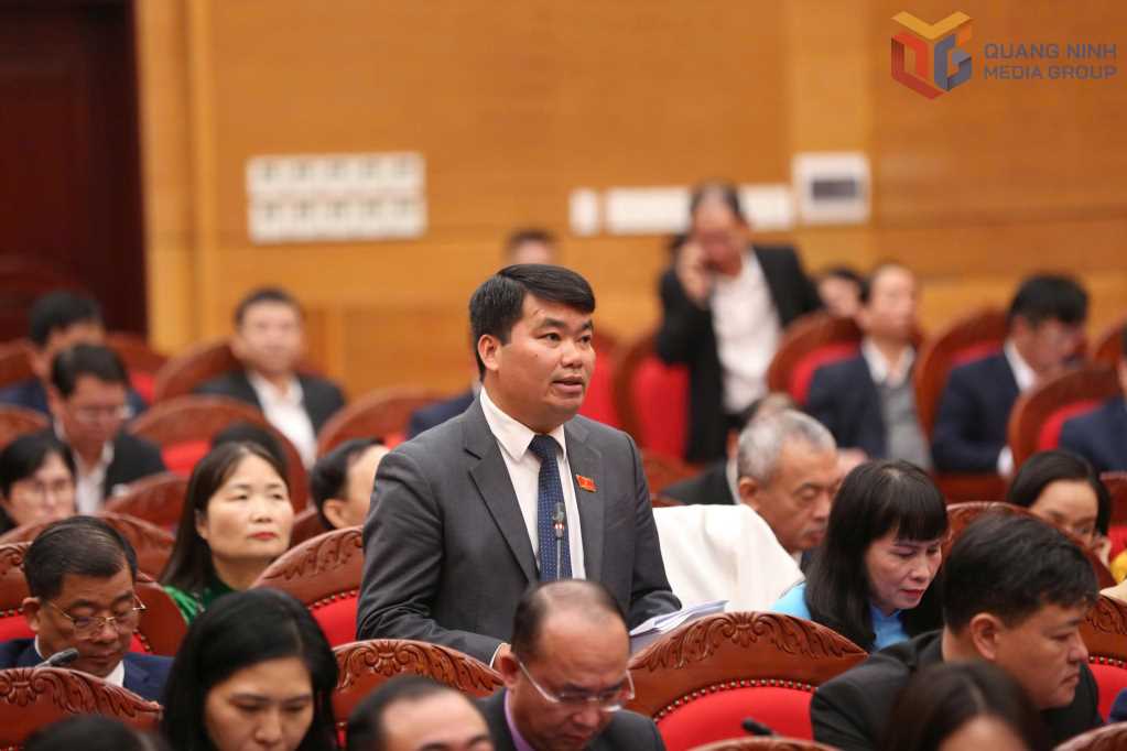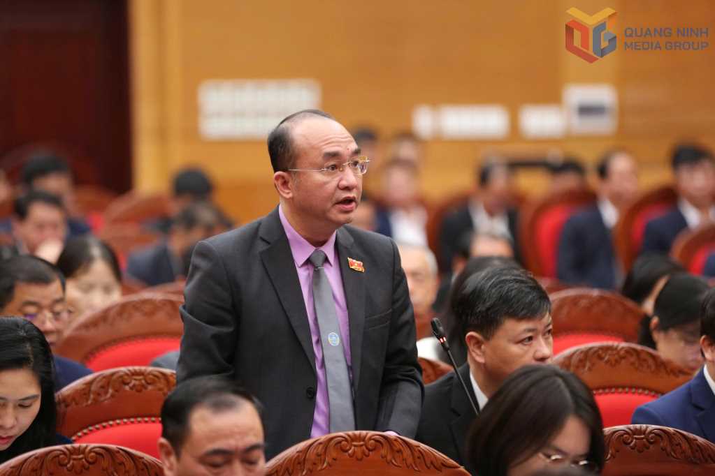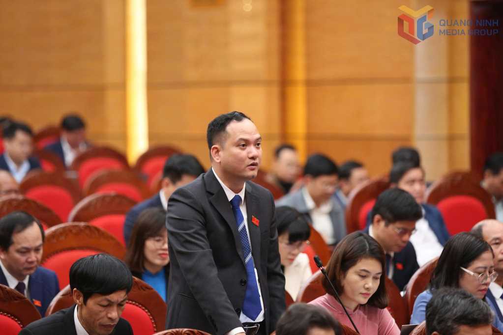 Đại biểu Vũ Đình Nhân, Phó Bí thư Thường trực Đảng ủy phường Mông Dương, chất vấn tại kỳ họp.