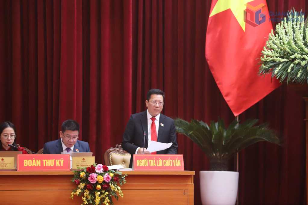 Tiếp tục chất vấn Giám đốc Sở Xây dựng, đại biểu Đào Biên Thùy, Bí thư Đảng ủy, Chủ tịch HĐND xã Quảng Tân đề nghị: Giám đốc Sở nêu rõ những giải pháp trong triển khai thực hiện các nghị quyết, kế hoạch của tỉnh, trong đó có Kế hoạch 272/KH-UBND của UBND tỉnh; Nghị quyết số 05-NQ/TU ban hành ngày 9/12/2025 của Ban Chấp hành Đảng bộ tỉnh về phương hướng, nhiệm vụ năm 2026 với chủ đề công tác năm “Đột phá trong tăng trưởng kinh tế, nâng cao chất lượng đô thị, sớm đạt tiêu chí thành thành phố trực thuộc Trung ương”.