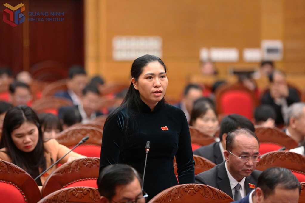 Đại biểu Nguyễn Thị Tuyết Hạnh, Chủ tịch Hội Nông dân tỉnh, tham gia ý kiến cần đẩy mạnh phân cấp cho cấp xã, tạo đột phá phát triển để Quảng Ninh sớm trở thành thành phố trực thuộc Trung ương.