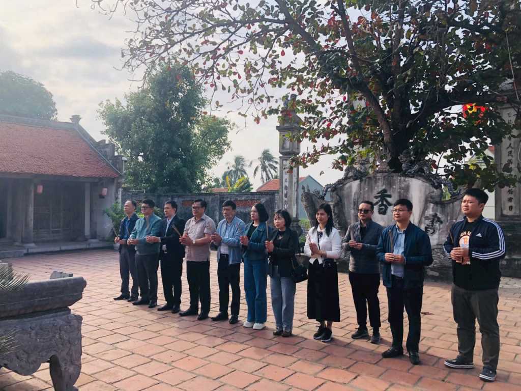 Du khách dâng hương tại đình Trung Bản, thuộc Khu di tích lịch sử Bạch Đằng. Ảnh: Chiến Thắng (CTV)