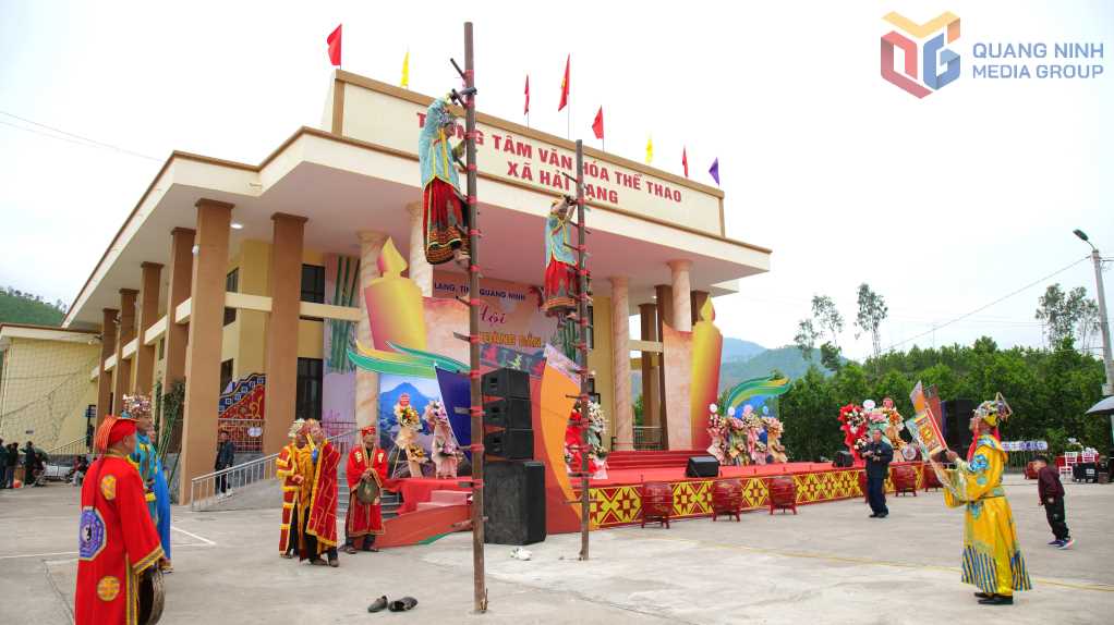 Nghi lễ leo dao do các thầy cúng xã Hải Lạng thực hiện.