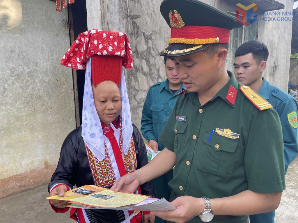 Cán bộ, chiến sĩ Ban Chỉ huy PTKV 2 - Bình Liêu tuyên truyền, vận động đồng bào dân tộc thiểu số thực hiện theo chủ trương, chính sách của Đảng.