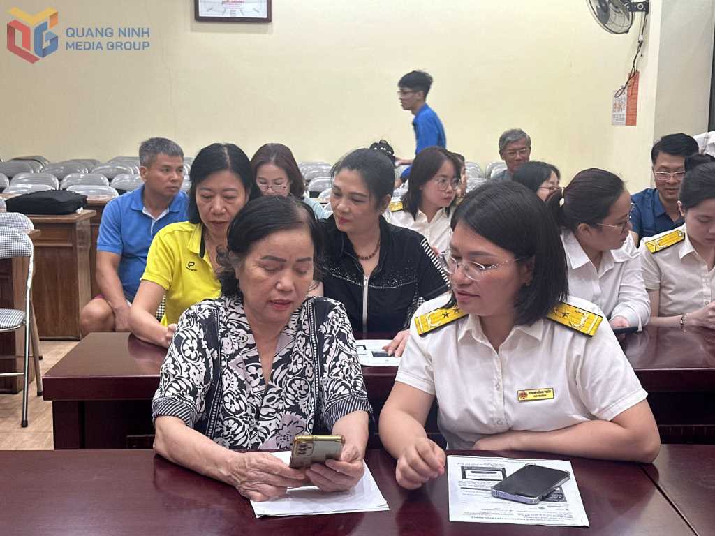 Cán bộ Thuế Cơ sở 1 Quảng Ninh hướng dẫn người dân phường Hồng Gai cài đặt eTax Mobile.