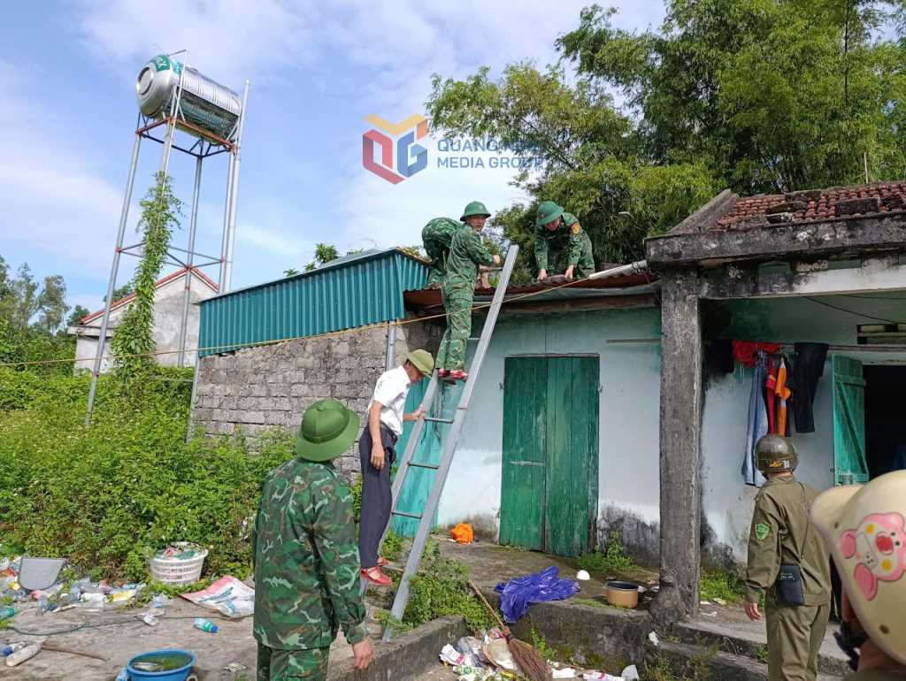 CBCS Đồn BPCK cảng Vạn Gia giúp nhân dân xã Vĩnh Thực phòng chống bão.
