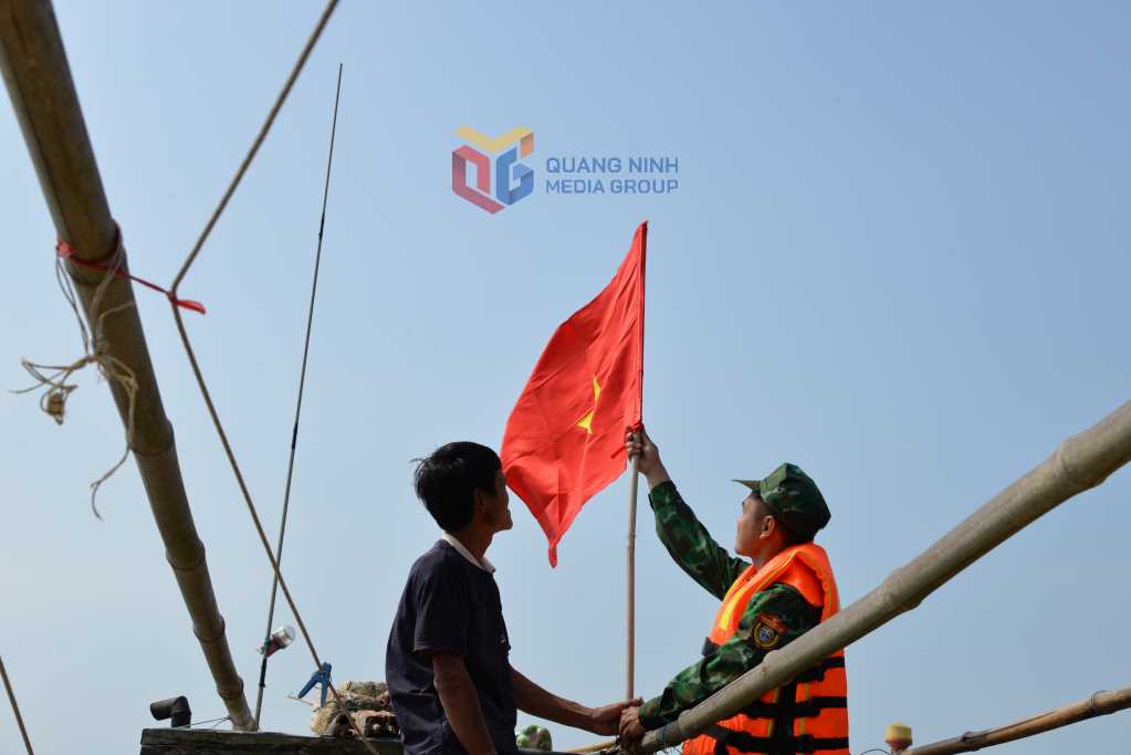 Đồn BPCK cảng Vạn Gia tặng và giúp ngư dân treo cờ Tổ quốc.