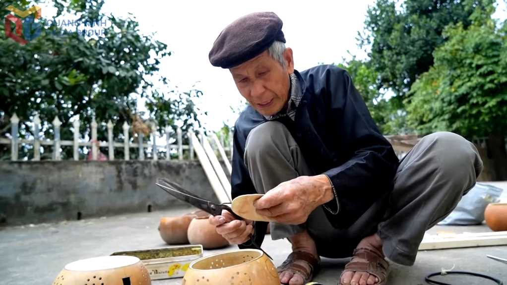 Nghệ nhân Ưu tú Lương Thiêm Phú tỉ mỉ chế tác đàn tính.