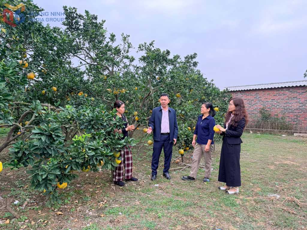 Cán bộ Phòng Giao dịch Ngân hàng Chính sách xã hội Đông Triều kiểm tra việc sử dụng vốn.