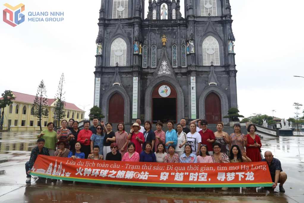 Khách du lịch Trung Quốc tham quan và chụp ảnh lưu niệm tại Nhà thờ Trà Cổ, phường Móng Cái 1.