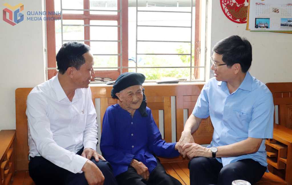 Đồng chí Phó Bí thư Tỉnh ủy đã tới thăm, tặng quà Mẹ Việt Nam Anh hùng Hoàng Thị Nghi, 103 tuổi. Mẹ có chồng và con trai hy sinh trong kháng chiến chống Pháp và chống Mỹ.