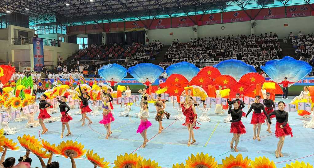 Đồng diễn nghệ thuật với chủ đề "Phường Đông Triều - Cùng đất nước trong kỷ nguyên vươn mình của dân tộc."