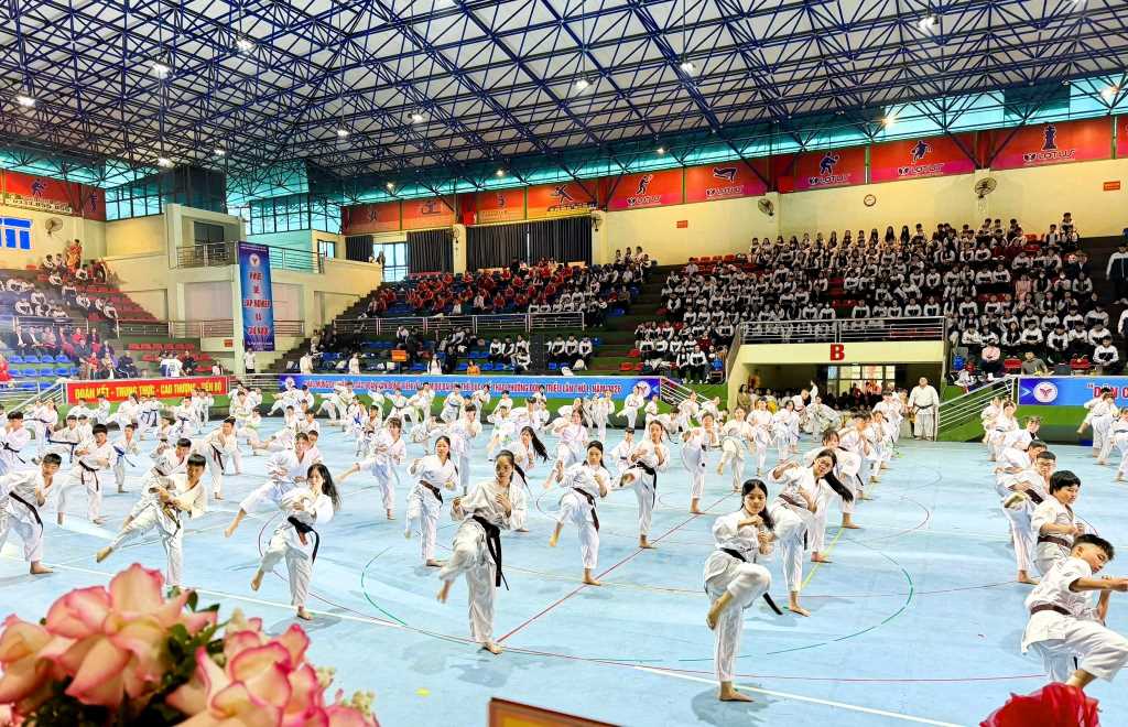 Màn đồng diễn Vovinam của các võ sinh trên địa bàn phường.