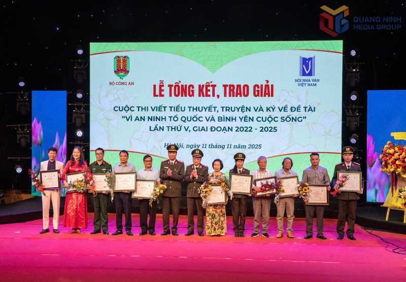 Chiều 11/11, tại Hà Nội, Bộ Công an phối hợp với Hội Nhà văn Việt Nam tổ chức lễ tổng kết và trao giải Cuộc thi viết tiểu thuyết, truyện và ký về đề tài “Vì an ninh Tổ quốc và bình yên cuộc sống” lần thứ V, giai đoạn 2022 – 2025. Thượng tướng Trần Quốc Tỏ, Ủy viên Trung ương Đảng, Thứ trưởng Bộ Công an, Chủ tịch Hội đồng Chỉ đạo cuộc thi; nhà thơ Nguyễn Quang Thiều, Chủ tịch Hội Nhà văn Việt Nam, đồng Chủ tịch Hội đồng chỉ đạo cuộc thi và đông đảo các nhà văn trong cả nước tham dự buổi lễ.