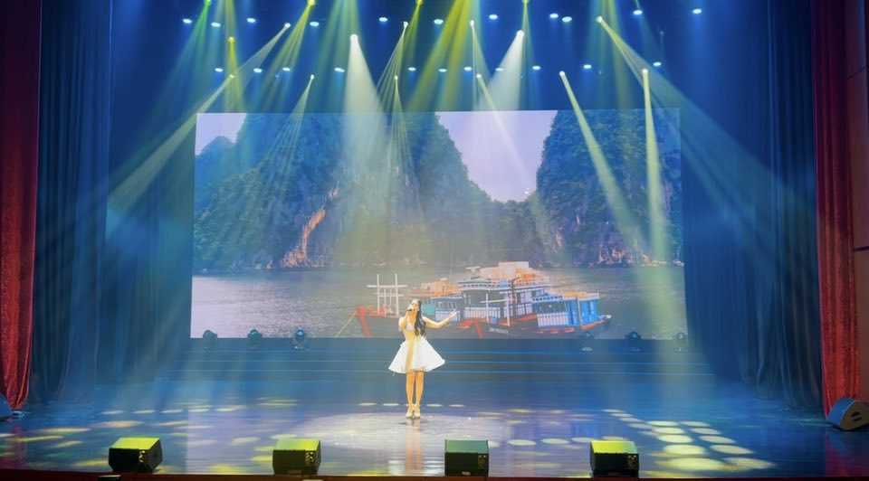 Ca sĩ Mai Trang thể hiện tác phẩm “Hạ Long mình chill nhé”. Ảnh do Chi hội Nhạc sĩ Việt Nam tỉnh Quảng Ninh cung cấp.