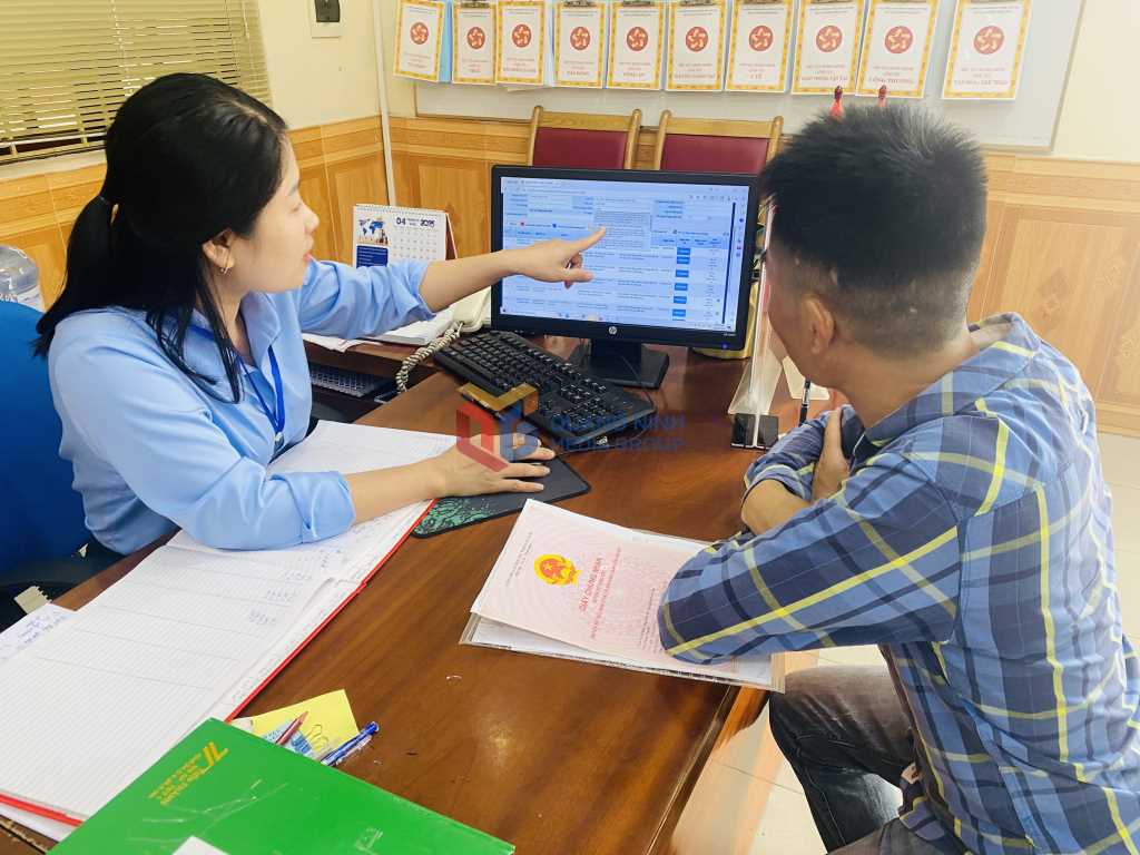 Cán bộ Trung tâm Phục vụ hành chính công xã Tiên Yên hướng dẫn người dân nộp TTHC. Ảnh Ngọc Trâm