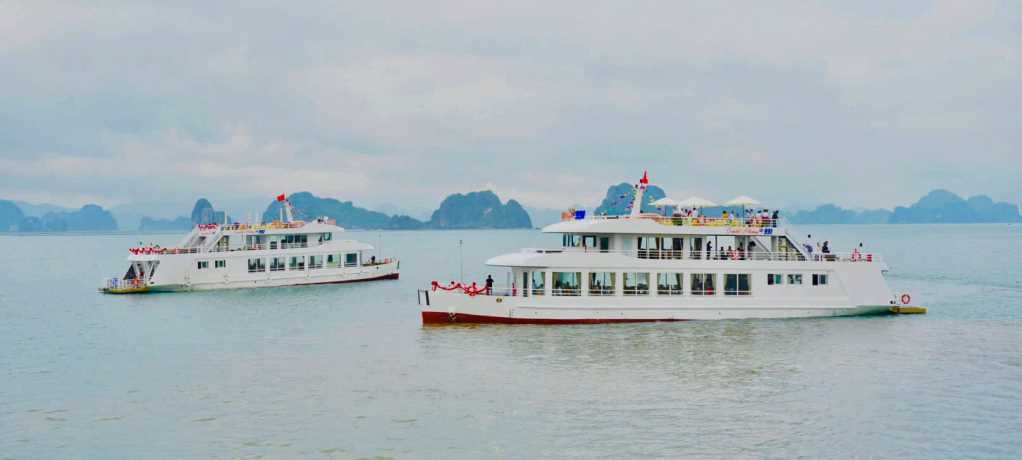 Hai tàu du lịch cao cấp đầu tiên đi vào hoạt động phục vụ du lịch trên Vịnh Bái Tử Long từ tháng 5/2025. Ảnh: Hoàng Quỳnh