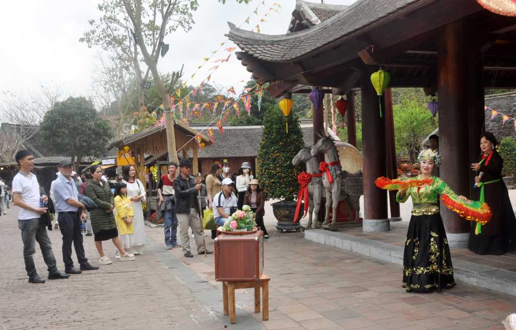Du khách xem biểu diễn nghệ thuật truyền thống tại Yên Tử.