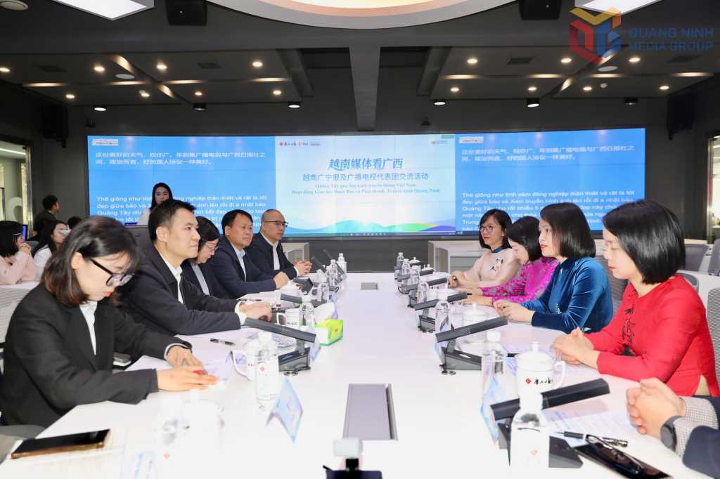 Đoàn công tác Báo và Phát thanh, Truyền hình Quảng Ninh (Việt Nam) hội đàm với Tập đoàn Truyền thông Nhật báo Quảng Tây (Trung Quốc). Ảnh: Đỗ Phương