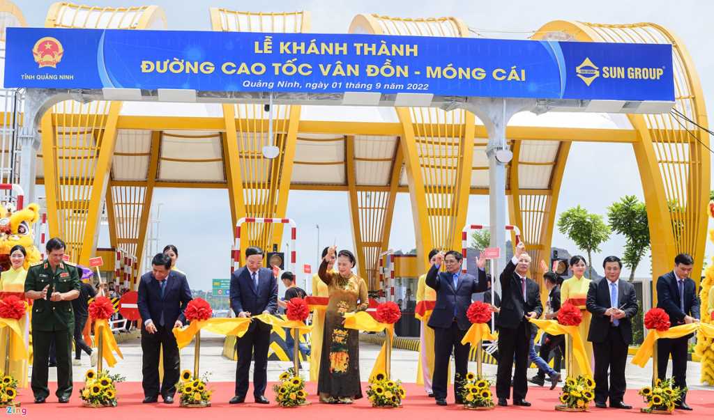 Ủy viên Bộ Chính trị, Thủ tướng Chính phủ Phạm Minh Chính cùng lãnh đạo Trung ương, tỉnh Quảng Ninh, cắt băng khánh thành đường cao tốc Vân Đồn - Móng Cái, công trình được đầu tư theo phương thức PPP (tháng 9/2022).