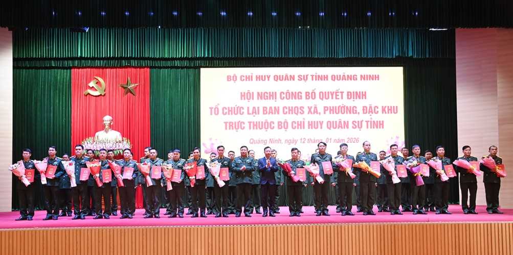 Chiều 12/1, Bộ Chỉ huy Quân sự (CHQS) tỉnh tổ chức hội nghị công bố quyết định tổ chức lại Ban CHQS xã, phường, đặc khu trực thuộc Bộ CHQS tỉnh Quảng Ninh. Dự và chỉ đạo hội nghị có các đồng chí: Thiếu tướng Lê Văn Long, Phó Tư lệnh Quân khu 3; Nghiêm Xuân Cường, Phó Chủ tịch HĐND tỉnh Quảng Ninh; Lê Văn Ánh, Phó Chủ tịch UBND tỉnh.