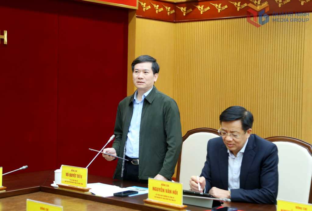 Đồng chí Vũ Quyết Tiến, Phó Bí thư Tỉnh ủy, Chủ tịch Ủy ban MTTQ tỉnh, phát biểu tại hội nghị.