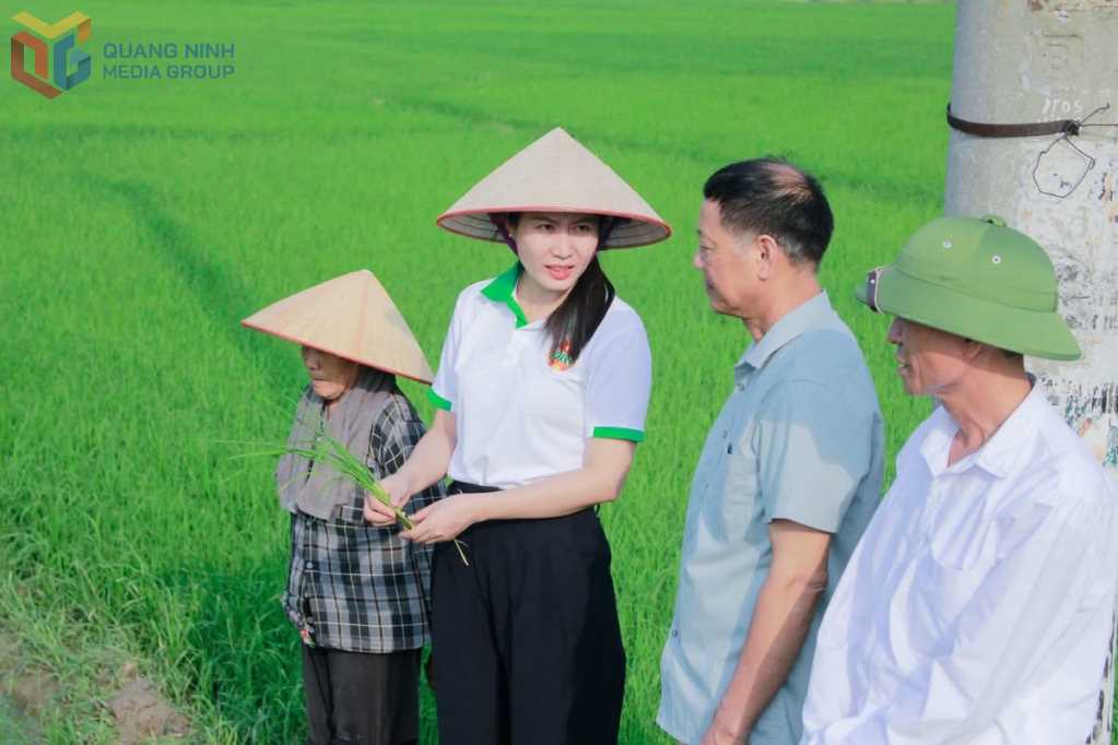 HND phường Đông Triều khảo sát thực tế các hộ trồng lúa, hướng tới thành lập Chi hội Nông dân nghề nghiệp cấy lúa an toàn.