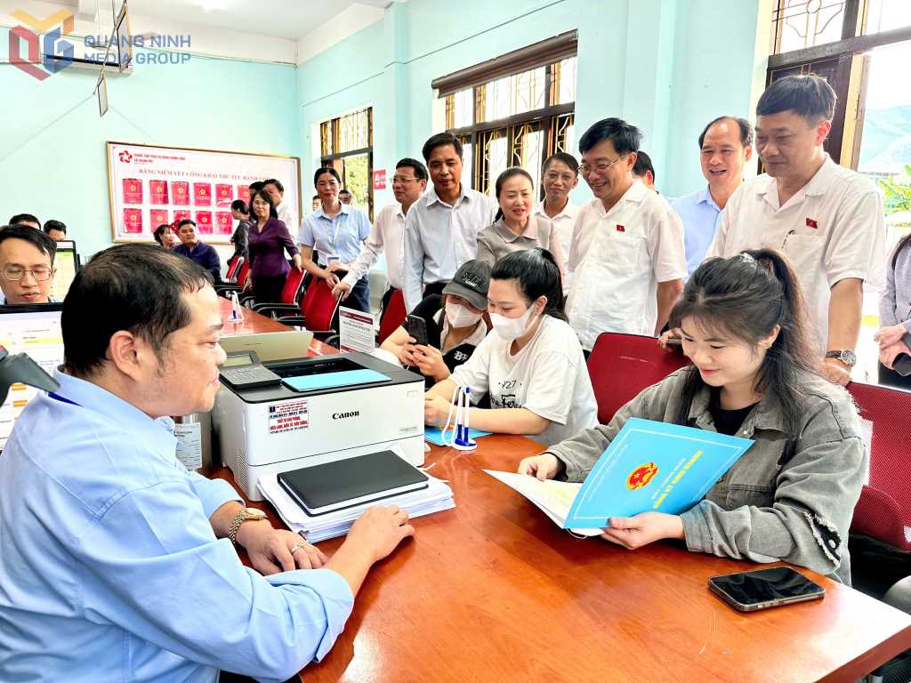 Phó Chủ tịch Quốc hội Vũ Hồng Thanh và Đoàn công tác của Ủy ban Thường vụ Quốc hội kiểm tra việc vận hành công việc tại xã Hoành Mô.