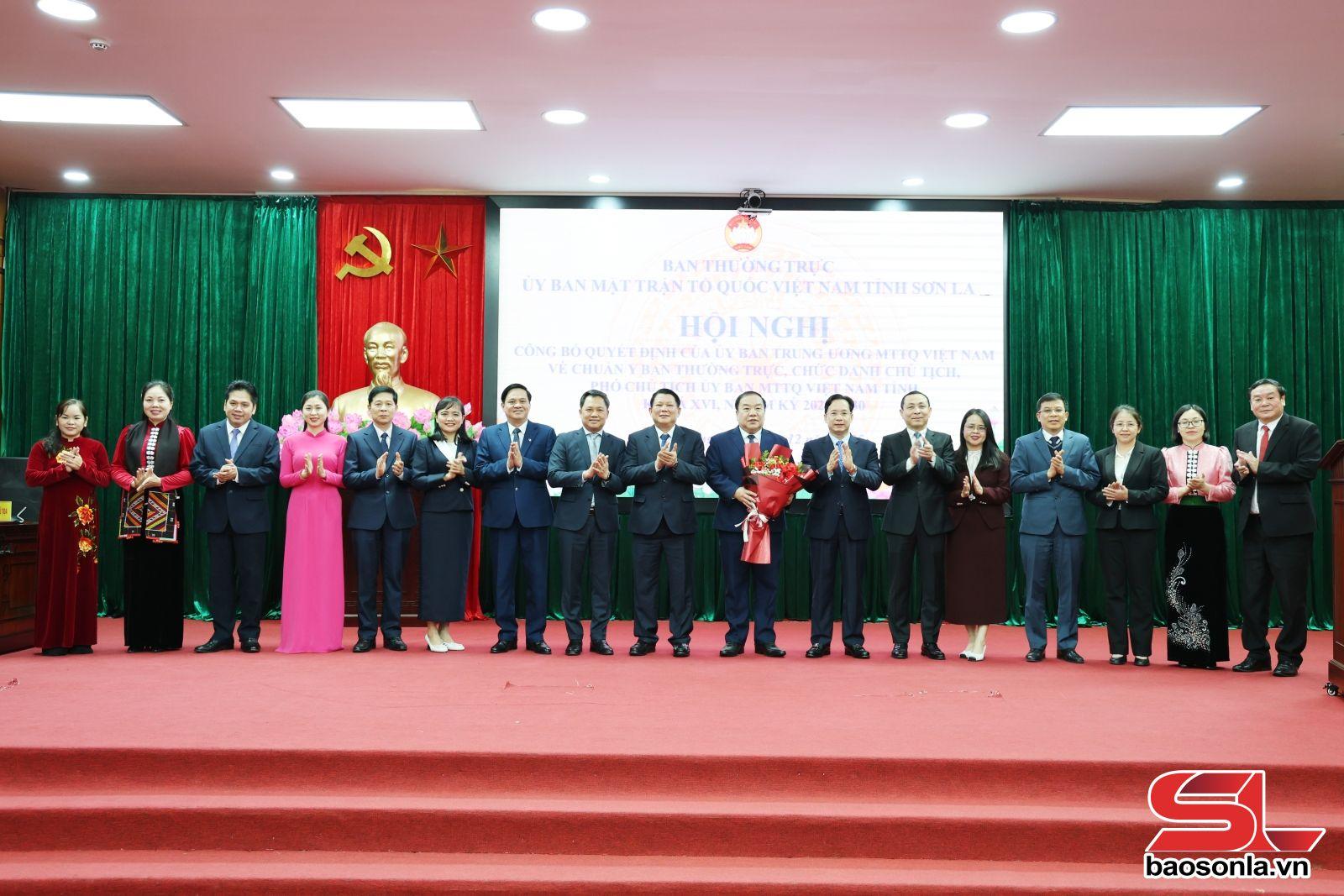 Tại hội nghị, đã công bố Quyết định số 574/QĐ-MTTW-BTT ngày 1/12/2025 của Ban Thường trực Ủy ban Trung ương MTTQ Việt Nam về việc công nhận các chức danh trong Ban Thường trực Ủy ban MTTQ Việt Nam tỉnh Sơn La khóa XVI, nhiệm kỳ 2025 - 2030 gồm 9 đồng chí. Đồng chí Chá A Của, Phó Bí thư Tỉnh ủy, giữ chức vụ Chủ tịch Uỷ ban MTTQ Việt Nam tỉnh Sơn La khóa XVI, nhiệm kỳ 2025 - 2030; đồng chí Nguyễn Mạnh Hùng, Ủy viên Ban Thường vụ Tỉnh ủy, giữ chức vụ Phó Chủ tịch Thường trực Ủy ban MTTQ Việt Nam tỉnh. Các đồng chí: Vũ Đức Thuận, Tỉnh ủy viên, Chủ tịch Hội Nông dân tỉnh; Cầm Thị Huyền Trang, Tỉnh ủy viên, Bí thư Đoàn Thanh niên cộng sản Hồ Chí Minh tỉnh; Cầm Thị Hồng Duyên, Tỉnh ủy viên, Chủ tịch Hội Liên hiệp Phụ nữ tỉnh; Hoàng Mạnh Long, Chủ tịch Hội Cựu chiến binh tỉnh; Sòi Ngọc Cương; Hoàng Thị Lương Tâm; Giàng Thị Hương giữ chức Phó Chủ tịch Ủy ban MTTQ Việt Nam tỉnh.