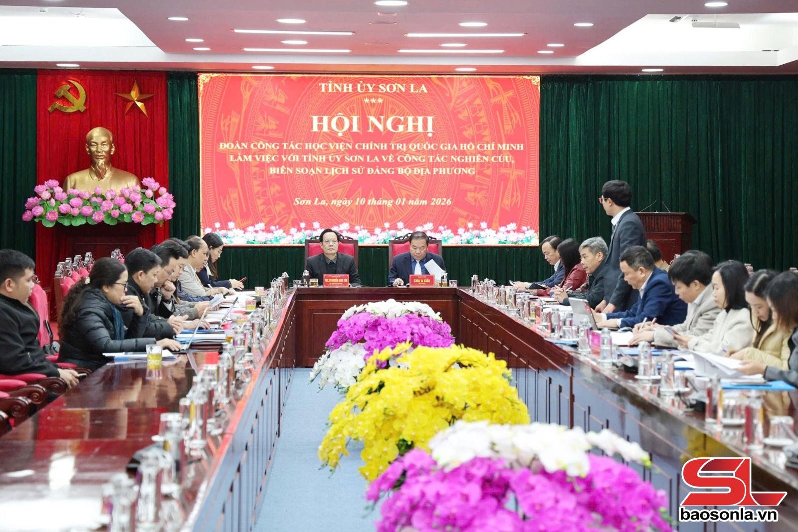 Phát biểu tại cuộc làm việc, đồng chí Viện trưởng Viện Lịch sử Đảng đã ghi nhận, đánh giá cao sự quan tâm lãnh đạo, chỉ đạo của Tỉnh ủy Sơn La đối với công tác nghiên cứu, biên soạn lịch sử Đảng bộ địa phương. Đồng thời đề nghị tỉnh tiếp tục xây dựng kế hoạch, chương trình cụ thể, làm rõ trách nhiệm của cấp ủy, nhất là người đứng đầu, trong triển khai hiệu quả Chỉ thị số 20-CT/TW; chú trọng thẩm định tính xác thực lịch sử; đổi mới công tác nghiên cứu, biên soạn, tuyên truyền, giáo dục lịch sử Đảng; sớm thu thập nguồn tư liệu mới, điều chỉnh nội dung phản ánh đúng thực tiễn giai đoạn chuyển tiếp khi thực hiện mô hình chính quyền địa phương 2 cấp; nghiên cứu xây dựng các công trình về “địa chỉ đỏ” gắn với văn hóa, du lịch và tình đoàn kết hữu nghị Việt Nam - Lào…
