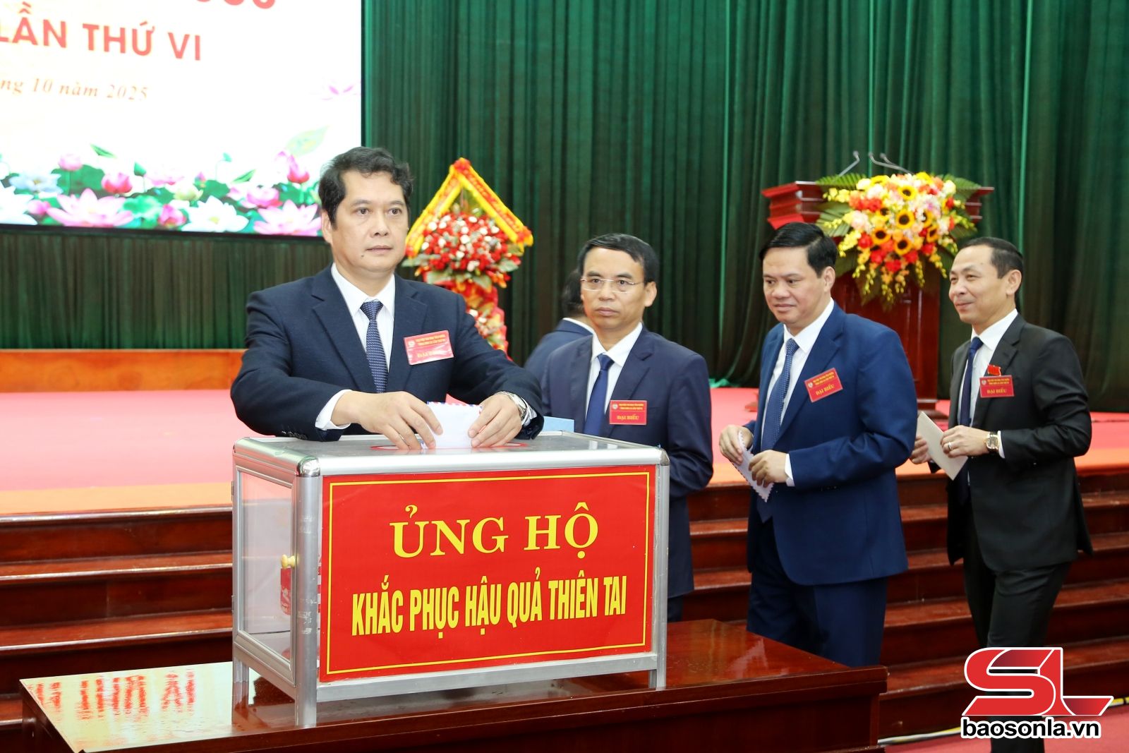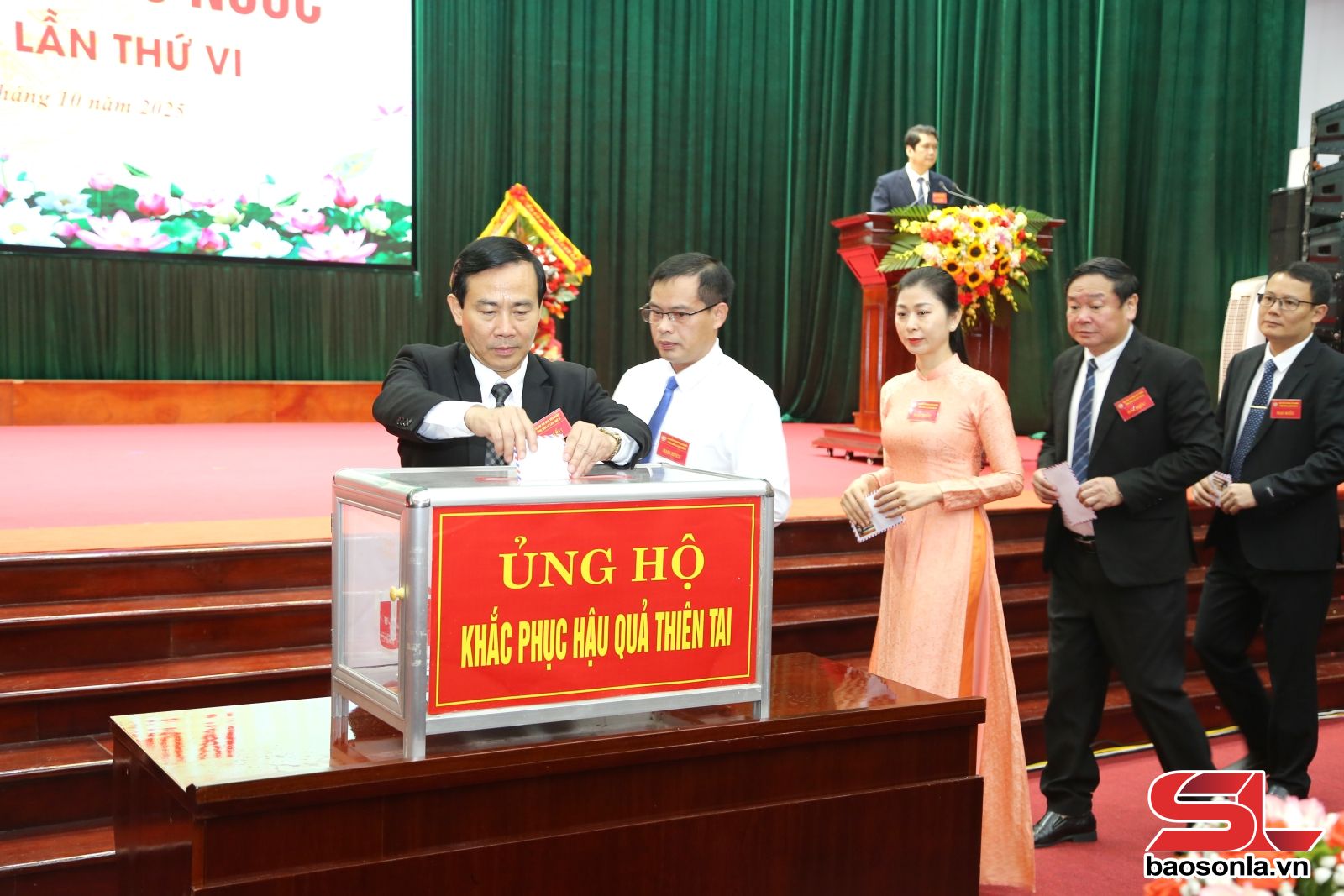 Trước khi bước vào đại hội, các đại biểu dự Đại hội đã quyên góp ủng hộ đồng bào bị thiệt hại do thiên tai gây ra trên địa bàn tỉnh Sơn La.