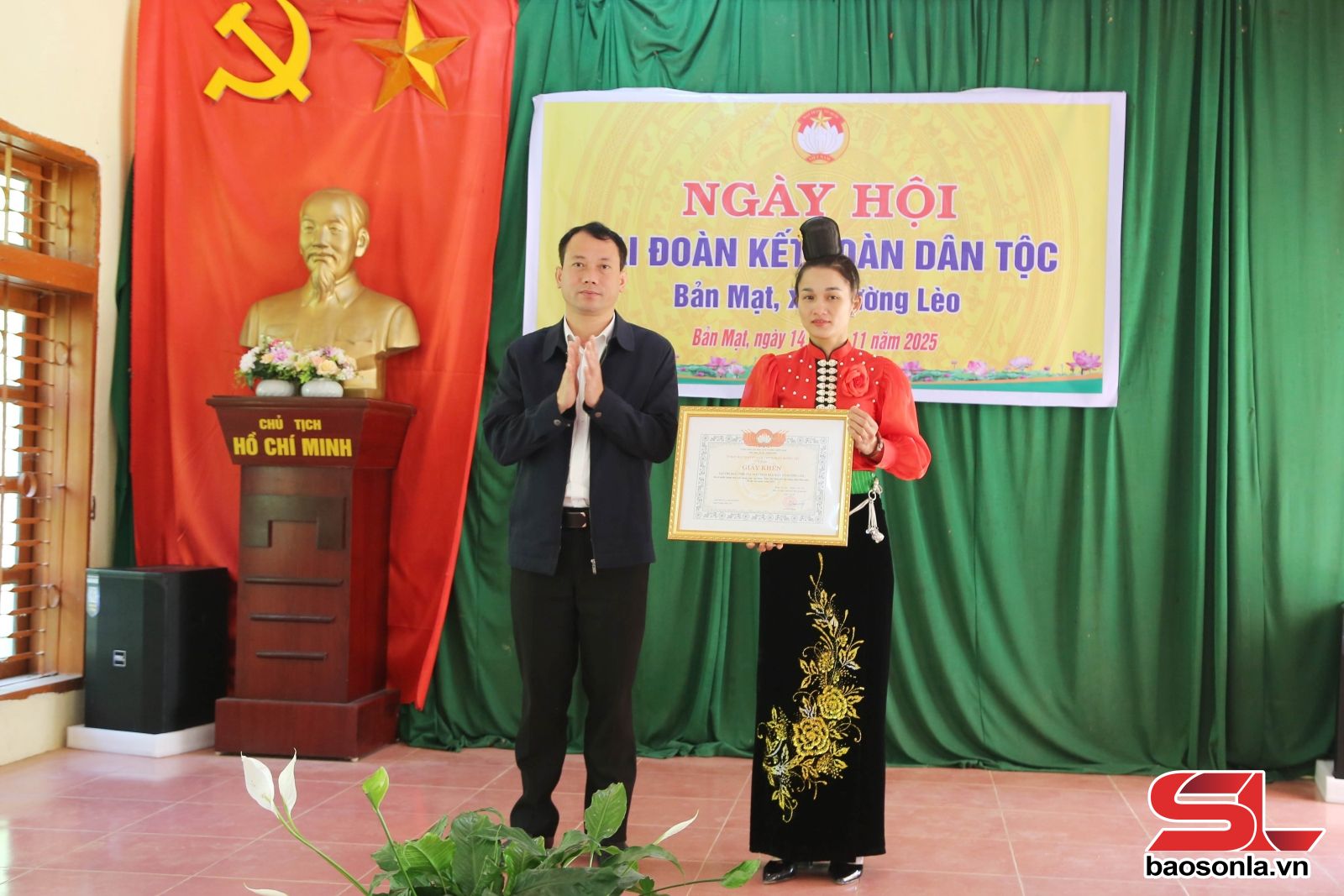 Nhân dịp này, đồng chí Chỉ huy trưởng Bộ CHQS tỉnh tặng quà của Tỉnh ủy, HĐND, UBND, Ủy ban MTTQ Việt Nam tỉnh cho bản Mạt; Ủy ban MTTQ Việt Nam xã Mường Lèo tặng giấy khen Ban công tác mặt trận bản Mạt.