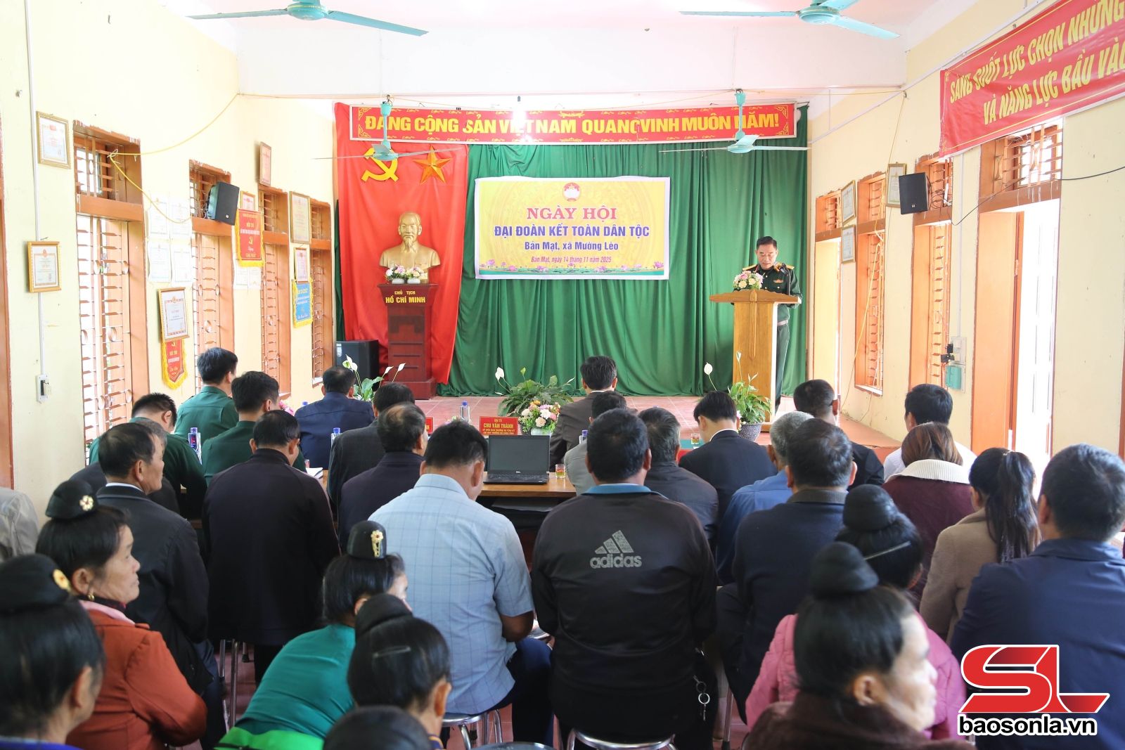 Phát biểu chung vui với nhân dân bản Mạt, đồng chí Chỉ huy trưởng Bộ CHQS tỉnh biểu dương những nỗ lực, cố gắng của chi bộ, ban quản lý bản, ban công tác mặt trận, các đoàn thể và nhân dân bản Mạt trong thời gian qua. Đồng thời, mong muốn bản Mạt tiếp tục phát huy truyền thống, xây dựng khối đại đoàn kết dân tộc, đẩy mạnh phong trào tự quản trong nhân dân, tích cực tham gia bảo vệ an ninh trật tự, ngăn chặn, đẩy lùi các tệ nạn xã hội; tích cực tham gia các cuộc vận động, phong trào thi đua yêu nước, quyết tâm xây dựng bản ngày càng giàu đẹp, văn minh.