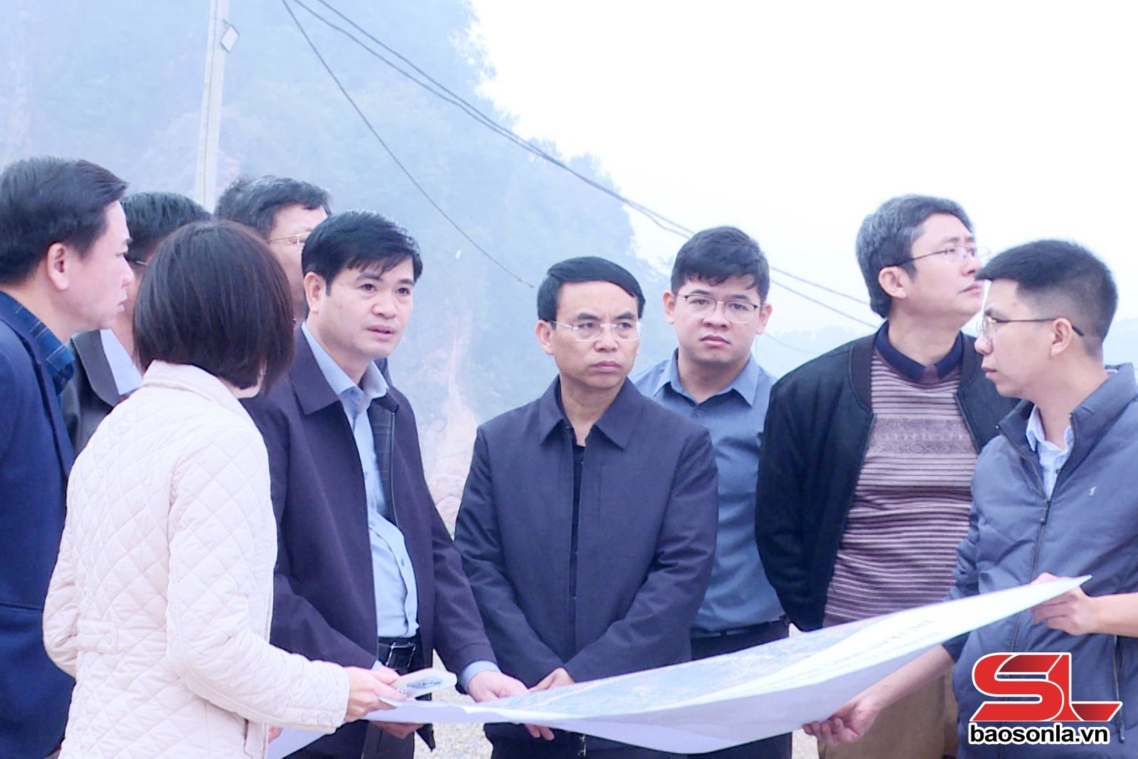 Đồng chí Phó Chủ tịch UBND tỉnh kiểm tra thực địa và làm việc về Dự án đường trục chính đô thị - nội thị Mộc Châu Dự án đường vào bản Thuông Cuông
