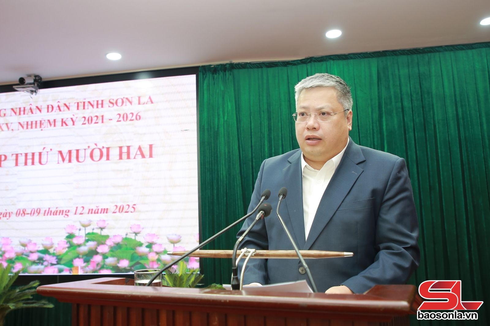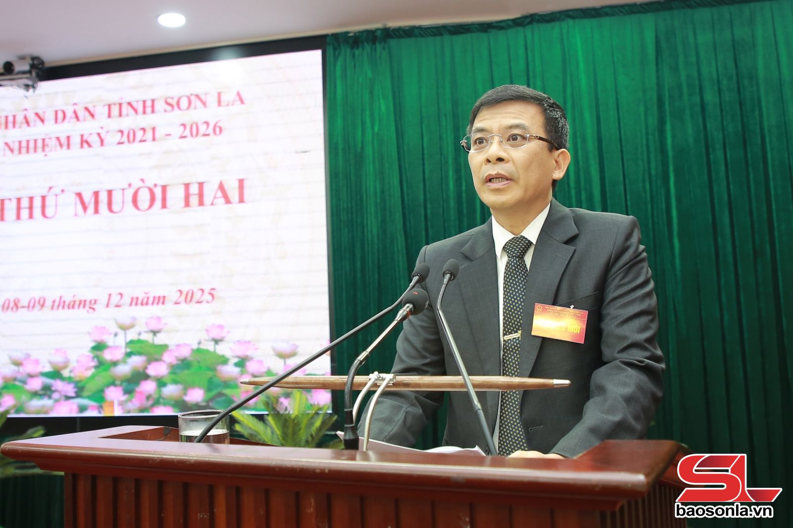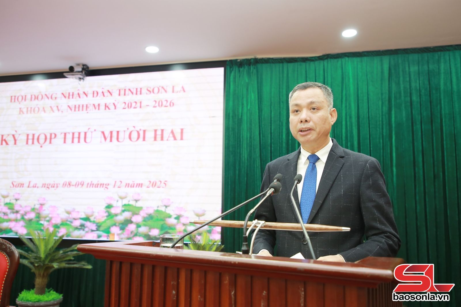 Giám đốc Sở Tài chính đã trình các dự thảo nghị quyết của HĐND tỉnh gồm: Quy định phân cấp nguồn thu, nhiệm vụ chi và tỷ lệ phần trăm phân chia các khoản thu giữa ngân sách cấp tỉnh và ngân sách cấp xã trên địa bàn tỉnh Sơn La; Kế hoạch phát triển kinh tế - xã hội 5 năm 2026 - 2030; Kế hoạch tài chính 5 năm địa phương giai đoạn 2026 - 2030; Kế hoạch phát triển kinh tế - xã hội năm 2026; dự thảo Nghị quyết của HĐND tỉnh về kế hoạch đầu tư công vốn ngân sách địa phương năm 2026; dự toán thu, chi ngân sách nhà nước tỉnh năm 2026; phân bổ dự toán chi ngân sách cấp tỉnh và mức bổ sung cân đối ngân sách cho các xã, phường năm 2026; bãi bỏ Nghị quyết số 88/2024/NQ-HĐND ngày 12/7/2024 của HĐND tỉnh quy định thẩm quyền quyết định mua sắm hàng hóa, dịch vụ tại các cơ quan, tổ chức, đơn vị thuộc phạm vi quản lý của tỉnh.