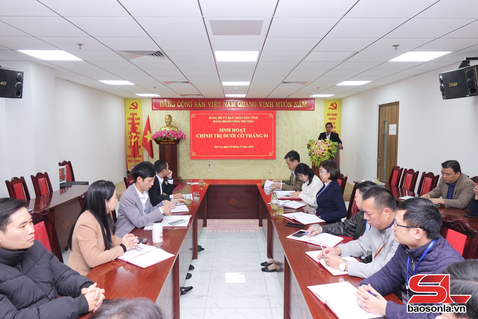 Tại Sở Công Thương, ngay từ đầu giờ sáng, Đảng bộ Sở đã tổ chức sinh hoạt dưới cờ, quán triệt các văn bản của Trung ương, của tỉnh. Đồng chí Hà Như Huệ, Bí thư Đảng ủy, Giám đốc Sở Công Thương, nhấn mạnh: Năm 2026 là năm đầu tiên thực hiện Nghị quyết Đại hội Đảng bộ tỉnh, với mục tiêu tăng trưởng kinh tế hai con số. Ngành Công Thương tập trung rà soát, cập nhật quy hoạch tỉnh giai đoạn 2025-2030; triển khai các nhiệm vụ về năng lượng tái tạo; phối hợp với các sở, ngành tham mưu thu hút đầu tư, phát triển các cụm công nghiệp, đẩy mạnh công nghiệp chế biến nông sản nhằm nâng cao giá trị gia tăng. Cùng với đó, Sở xây dựng kế hoạch xúc tiến thương mại trong và ngoài nước; đồng thời quán triệt cán bộ, công chức thực hiện nghiêm kỷ luật, kỷ cương hành chính, tập trung triển khai nhiệm vụ ngay từ đầu năm, bảo đảm công việc thông suốt, không để phát sinh độ trễ.
