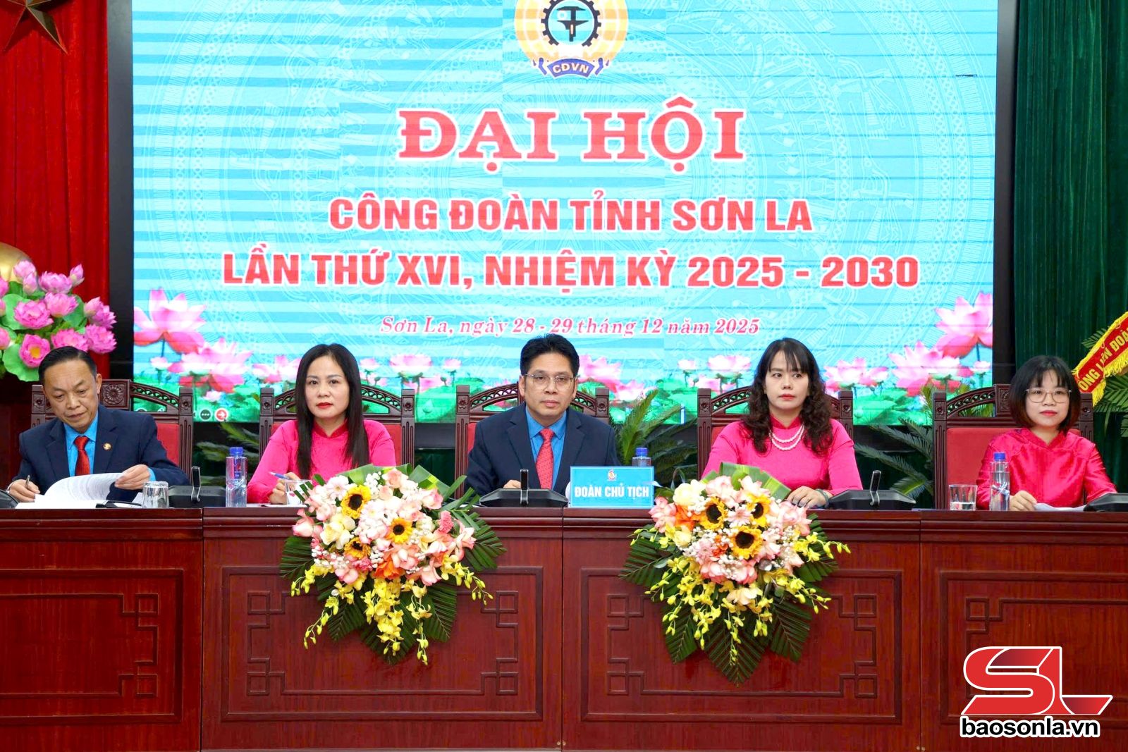 Tại phiên thứ nhất, Đại hội đã thông qua Chương trình, Nội quy, Quy chế Đại hội; bầu Đoàn Chủ tịch, Đoàn Thư ký Đại hội, Ban thẩm tra tư cách đại biểu; quán triệt một số nội dung về công tác bầu cử; báo cáo kiểm điểm của Ban Chấp hành, Ban Thường vụ LĐLĐ tỉnh khóa XV, giai đoạn 2023-2025; thông qua Đề án nhân sự Ban Chấp hành LĐLĐ tỉnh khóa XVI, nhiệm kỳ 2025-2030; định hướng nội dung thảo luận, thảo luận tại tổ; thông qua Báo cáo tổng hợp ý kiến tham gia dự thảo văn kiện Đại hội Công đoàn Việt Nam lần thứ XIV, văn kiện Đại hội Công đoàn tỉnh Sơn La lần thứ XVI.