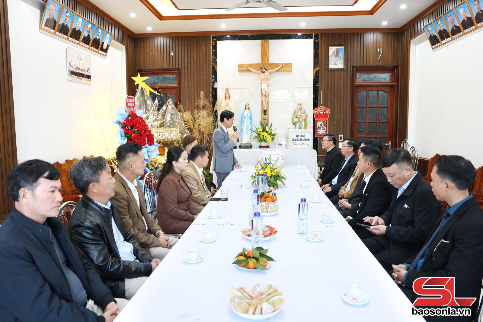 Nhân dịp Lễ Giáng sinh năm 2025, Đoàn công tác của Sở Dân tộc và Tôn giáo Sơn La gửi lời chúc mừng Giáng sinh an lành, hạnh phúc tới các linh mục và toàn thể bà con giáo dân giáo xứ; đồng thời thông tin về những điểm mới, nổi bật trong đời sống kinh tế - xã hội của tỉnh, đặc biệt là những nỗ lực thực hiện cuộc cách mạng về tinh gọn bộ máy hệ thống chính trị và xây dựng chính quyền địa phương hai cấp.