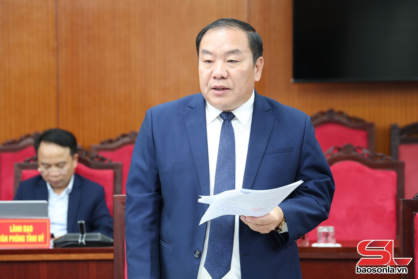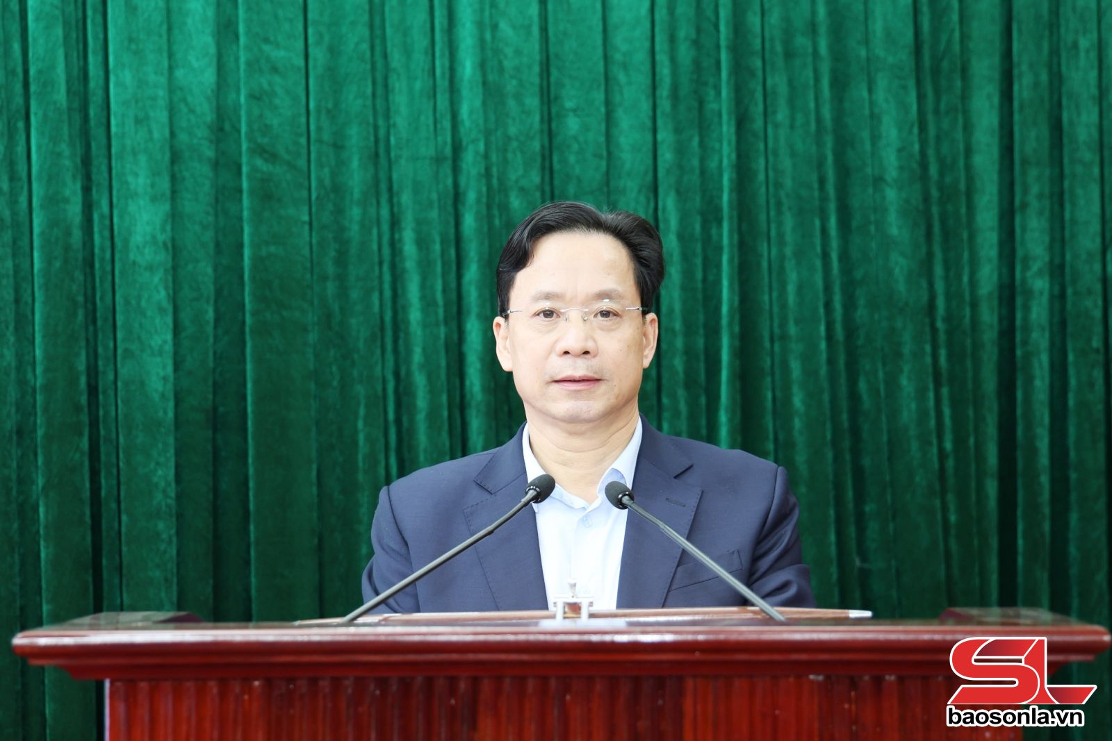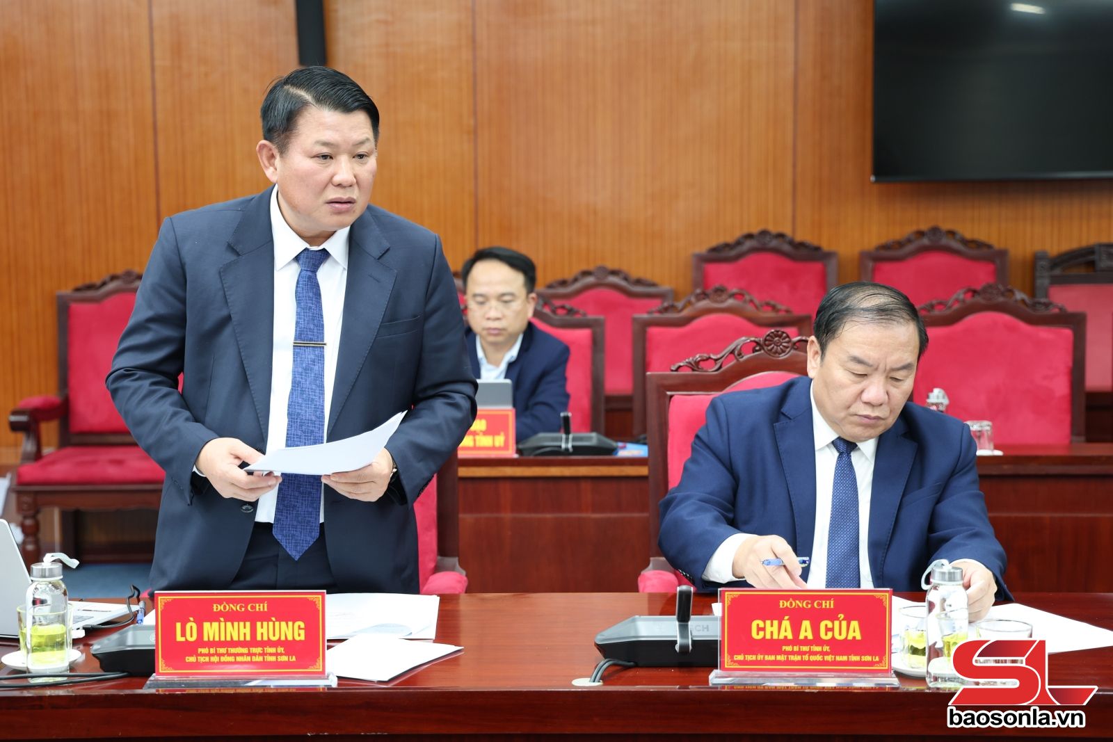 Chủ trì cuộc làm việc có các đồng chí: Hoàng Văn Nghiệm, Bí thư Tỉnh ủy, Trưởng Đoàn đại biểu Quốc hội tỉnh; Lò Minh Hùng, Phó Bí thư Thường trực Tỉnh ủy, Chủ tịch HĐND tỉnh; Nguyễn Đình Việt, Phó Bí thư Tỉnh ủy, Chủ tịch UBND tỉnh; Chá A Của, Phó Bí thư Tỉnh ủy, Chủ tịch Uỷ ban MTTQ Việt Nam tỉnh.