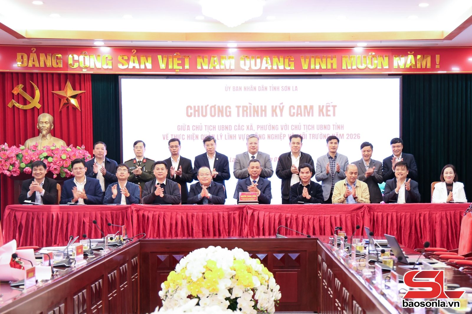 Tại hội nghị, đã tổ chức ký cam kết giữa Chủ tịch UBND tỉnh với Chủ tịch UBND các xã, phường về thực hiện quản lý lĩnh vực nông nghiệp và môi trường năm 2026; giữa Chủ tịch UBND tỉnh với chủ Giấy phép khai thác khoáng sản đã được UBND tỉnh cấp phép về chấp hành thực hiện các quy định của pháp luật về khoáng sản, đất đai và bảo vệ môi trường.