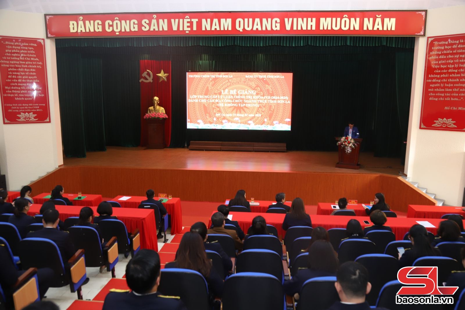 Dự bế giảng có đại diện Ban Giám hiệu Trường Chính trị tỉnh; Đảng ủy Thuế tỉnh Sơn La cùng các học viên lớp Trung cấp lý luận chính trị khóa IV.8.