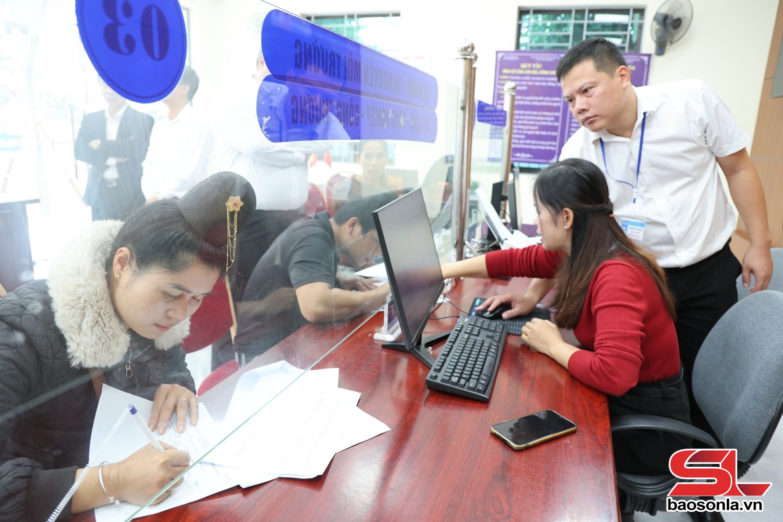 Công chức phường Chiềng Cơi giải quyết thủ tục hành chính cho nhân dân.