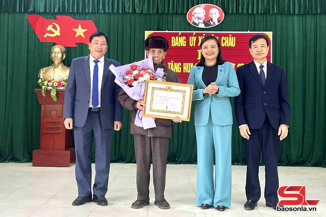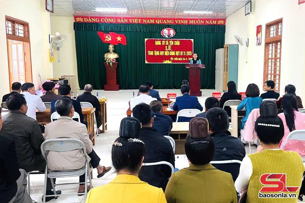 Tại buổi Lễ, đồng chí Lường Thị Vân Anh đã trao Huy hiệu 65 tuổi Đảng cho đảng viên Lò Văn Khó, Chi bộ bản Chiềng Sàng 2 và Huy hiệu 60 năm tuổi Đảng cho đảng viên Lừ Văn Lấm, Chi bộ bản Đán 2. Đồng chí Bí thư Đảng ủy xã Yên Châu trao Huy hiệu 30 năm tuổi Đảng cho đảng viên Hoàng Văn Hiêng, Chi bộ bản Chiềng Sàng.